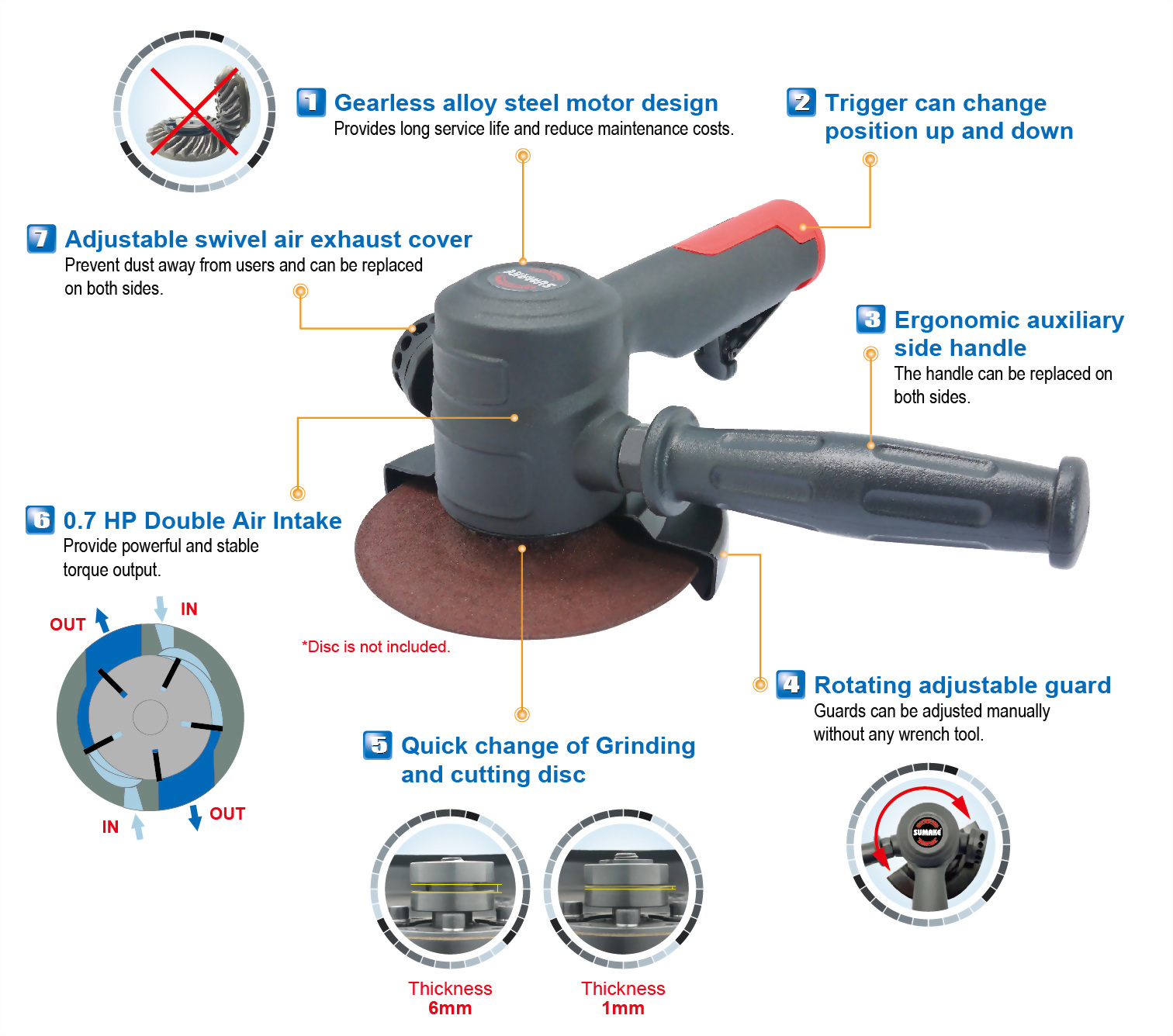 5" Gearless Air Angle Grinder-Quick Change Disc