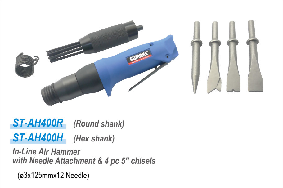 In-Line Air Hammer With Needle Attachment & 5" Chisels